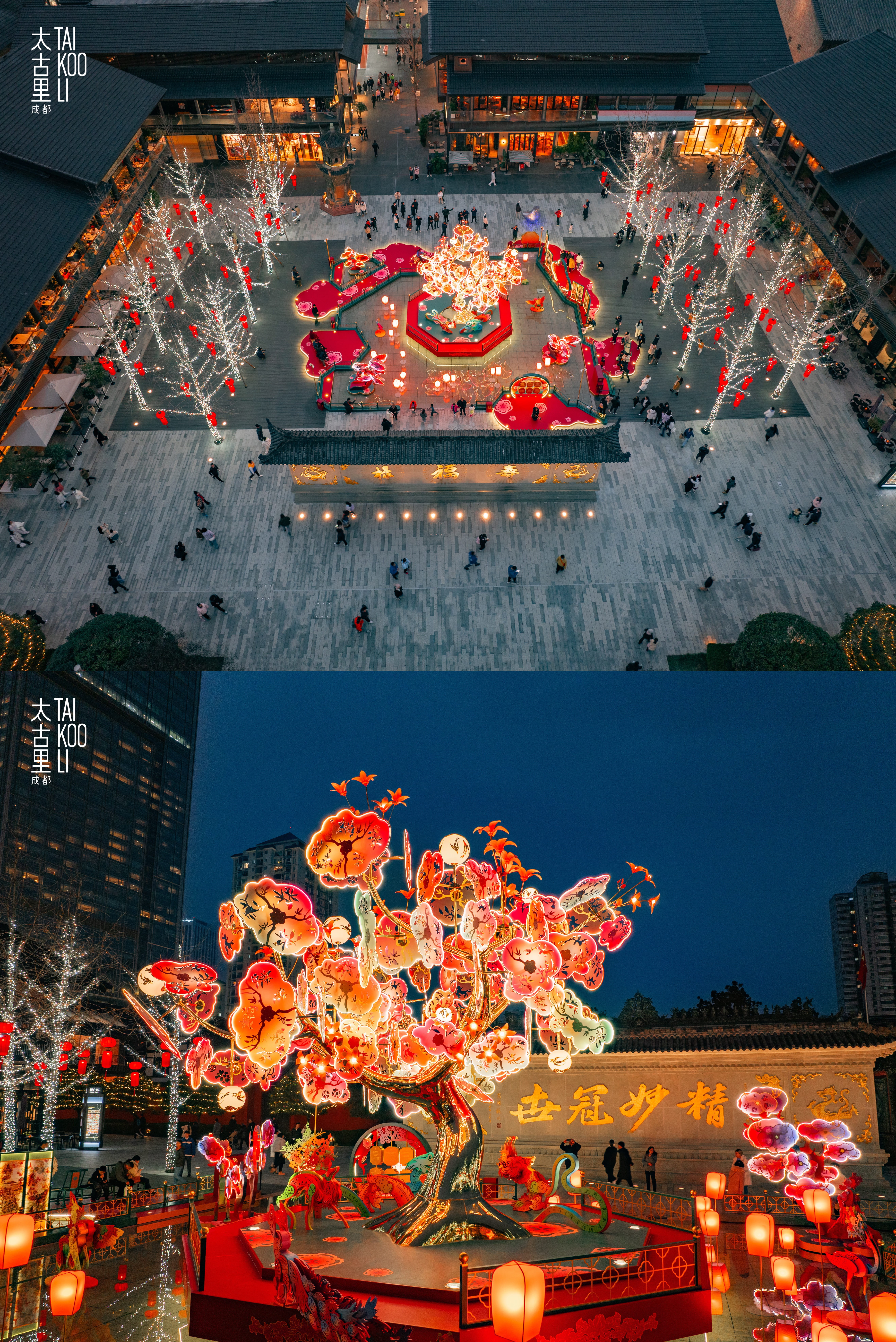 From January 16th, 2025, to February 12th, 2025, Taikoo Li Chengdu presented the Chinese New Year themed event "Tales of the Spring" art installation exhibition at Temple Plaza. Drawing inspiration from "Shan Hai Jing", with the Fusang tree and auspicious beasts as the core of creation, and integrating the intangible cultural heritage of shadow puppetry, an oriental mythological drama was staged at Temple Plaza. Every spring, the fu sang flowers bloom and auspicious animals play under the holy trees to celebrate the new year. Additionally, over 80 brands contributed exclusive products, VIP privileges, promotions, and seasonal menus to enhance the overall experience during the event. In the year of the Snake, Taikoo Li Chengdu sincerely invites customers to come to celebrate CNY, watching the oriental cultural drama joyfully with families and friends!
